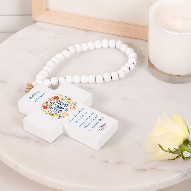 Floral Marian Hail Mary Hanging Cross- Regular price