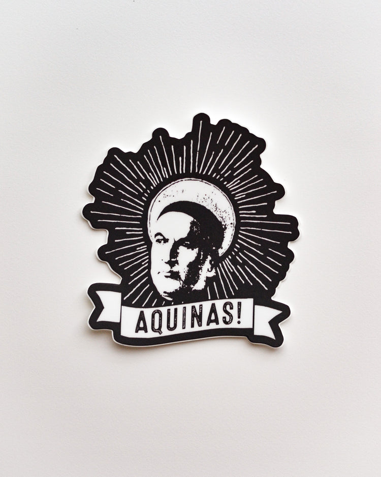 Bring the brilliance of St. Thomas Aquinas wherever you go with this bold Catholic vinyl sticker.